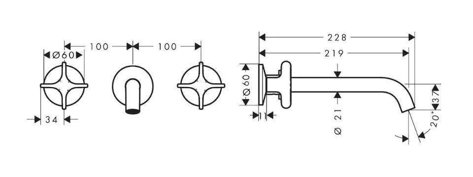 Axor One Umývadlová batéria pod omietku, s výpusťou, 3-otvorová inštalácia, EcoSmart, kefovaná mosadz