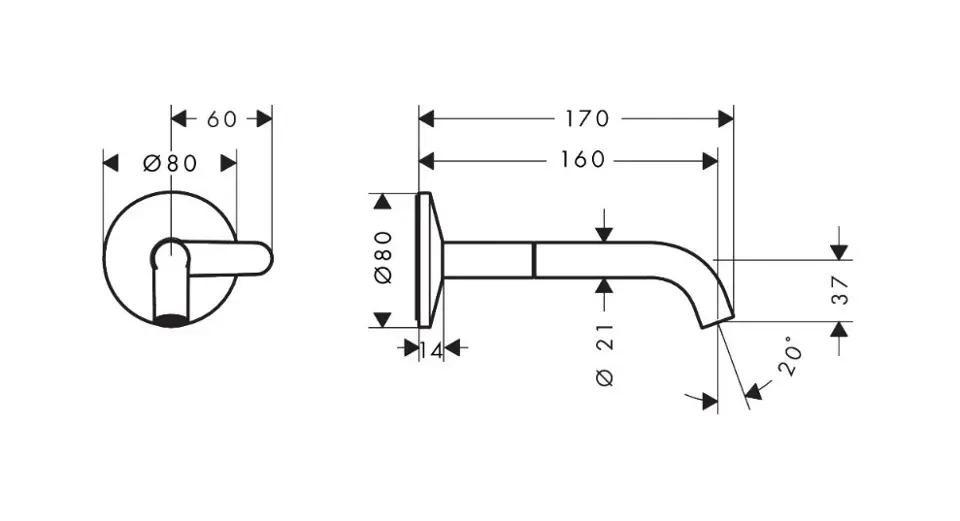 • dĺžka výtoku: 160 mm