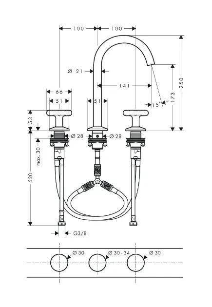 Axor One Umývadlová batéria s výpusťou Push-Open, 3-otvorová inštalácia, EcoSmart, leštený vzhľad zlata