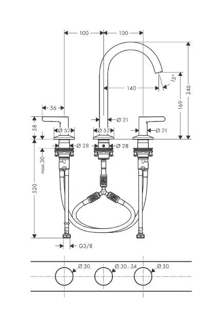 Axor One Umývadlová batéria s výpusťou Push-Open, 3-otvorová inštalácia, EcoSmart, matná biela