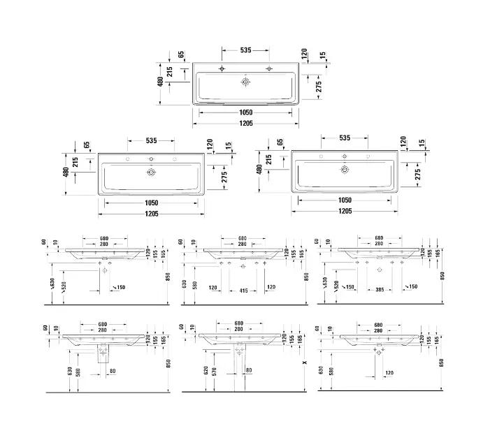 Duravit D-Neo Umývadlo 120×48 cm, s prepadom, bez otvoru na batériu, biela