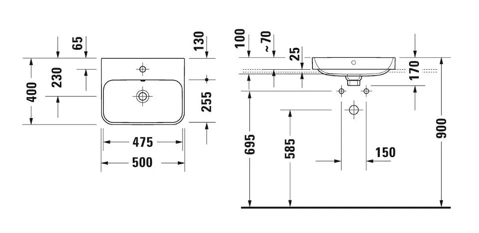Duravit Happy D.2 Umývadlo na dosku, 50×40 cm, s prepadom, bez otvoru na batériu, s výpusťou, antracit