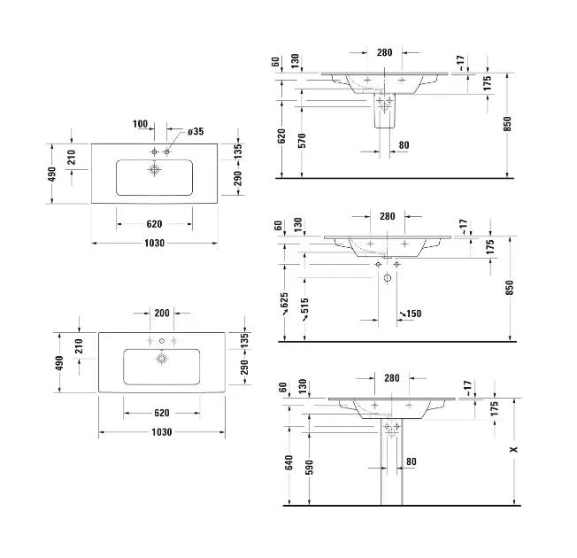 Duravit ME by Starck Umývadlo 103×49 cm, s prepadom, otvor na batériu, DuraShield, biela