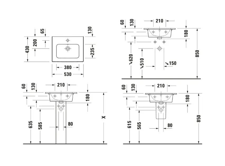Duravit ME by Starck Umývadlo 53×43 cm, s prepadom, bez otvoru na batériu, DuraShield, matná biela