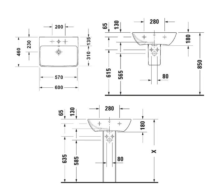 Duravit ME by Starck Umývadlo 60×46 cm, s prepadom, otvor na batériu, DuraShield, matná biela