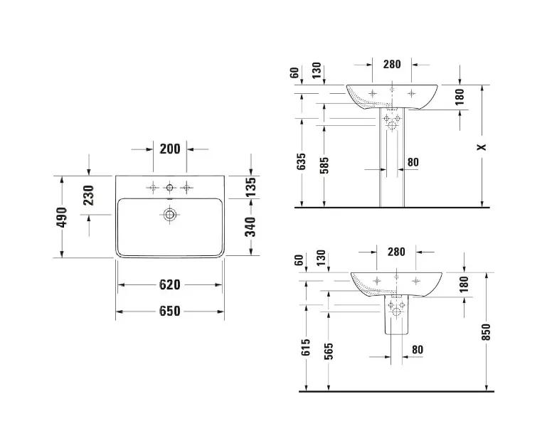 Duravit ME by Starck Umývadlo 65×49 cm, s prepadom, otvor na batériu, DuraShield, biela