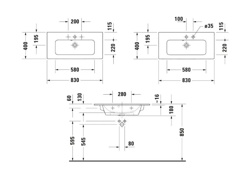 Duravit ME by Starck Umývadlo 83×40 cm, s prepadom, bez otvoru na batériu, DuraShield, matná biela