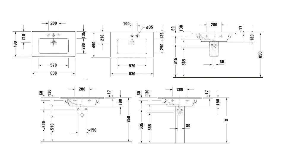 Duravit ME by Starck Umývadlo 83×49 cm, s prepadom, otvor na batériu, DuraShield, matná biela