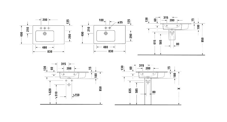 Duravit ME by Starck Umývadlo 83×49 cm, s prepadom, otvor na batériu, plocha na odkladanie vpravo, DuraShield, biela