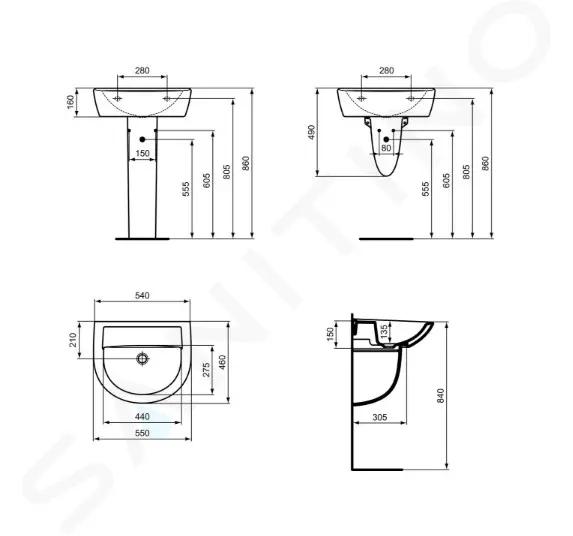 Ideal Standard Eurovit Umývadlo 55×46 cm, bez prepadu, bez otvoru na batériu, biela