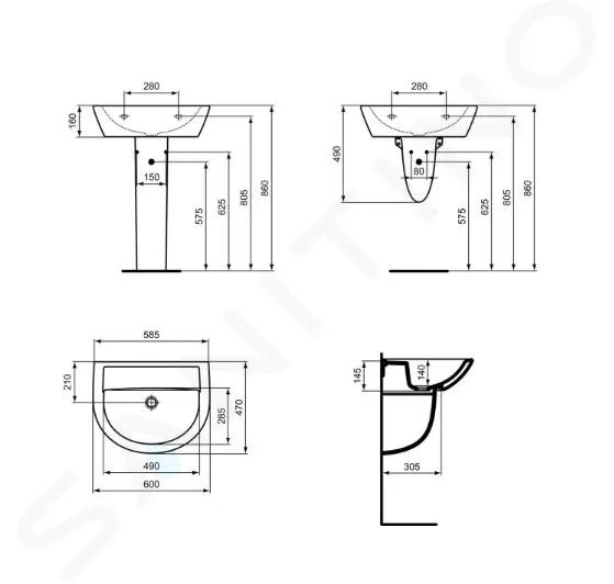 Ideal Standard Eurovit Umývadlo 60×47 cm, bez prepadu, bez otvoru na batériu, biela