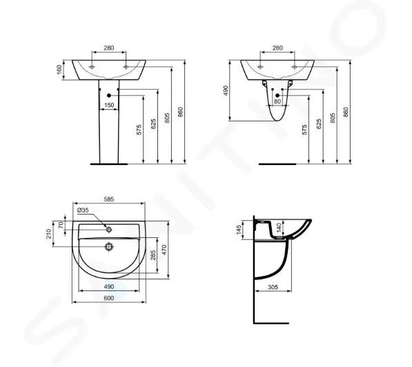 Ideal Standard Eurovit Umývadlo 60×47 cm, bez prepadu, otvor na batériu, biela