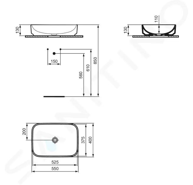 Ideal Standard i.Life B Umývadlo na dosku 55×40 cm, bez prepadu, bez otvoru na batériu, biela