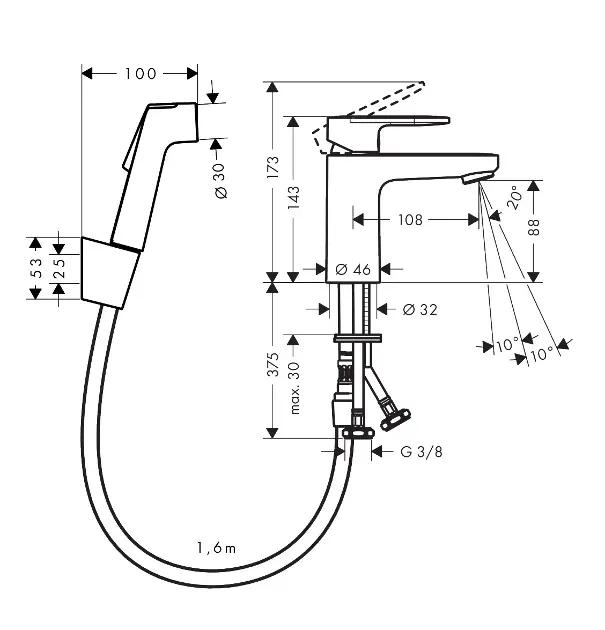 Hansgrohe Vernis Blend Umývadlová batéria s ručnou sprchou Bidette, chróm